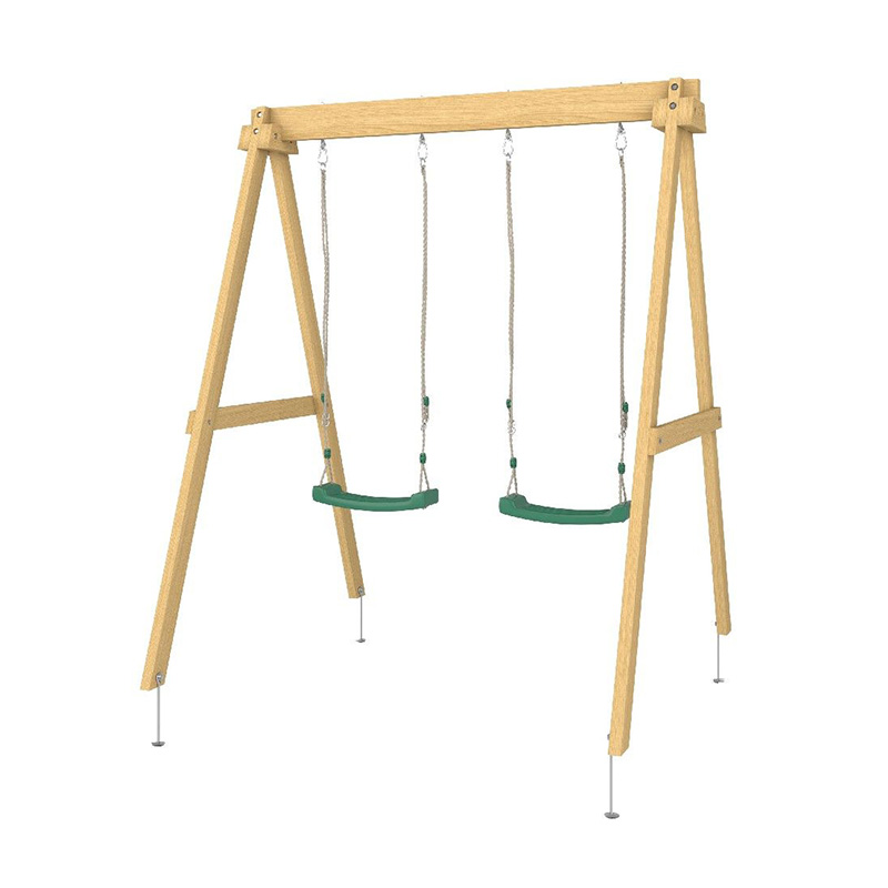 Se stabilním čtvercovým dětským švihem Wideway Double Swing Sets vaše děti budou pokračovat v vzrušujících dobrodružstvích. Tato dřevěná houpačka má speciální flexibilní houpací konektor, který nahrazuje plastové a kovové konektory, které jsou potřebné pro kulaté dřevo. Díky tomuto houpacímu konektoru lze dvojité houpačky snadno změnit na jediný výkyv s mírně vyčnívajícím paprskem. Nakonec váš malý dobrodruh může pověsit horolezeckou síť nebo opičí houpačku. Další výhodou je, že díky svému skvělému designu se stabilní sada houpání také hodí do menších zahrad.